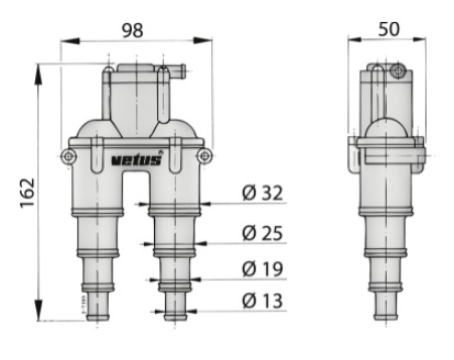 Ventilen er lavet af syntetisk materiale og er udstyret med en silikone anti-hævert trykventil og kræver minimal vedligeholdelse. Slanger Ø13-32mm.